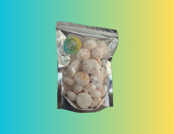 Freeze dried vanilla salt water taffy and fruit pebbles